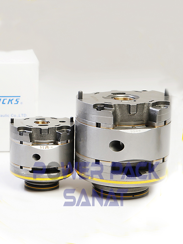 در پمپهای کارتریجی ویکرز سری VQ، کارتریجهای ۵ تکه (Five-Piece Cartridge Kits) از اجزای اصلی هستند که قابلیت تعویض کامل دارند و عملیات پمپاژ را انجام میدهند. این کارتریجها در سایزهای 20VQ، 25VQ، 35VQ و 45VQ طراحی شدهاند و به دلیل طراحی ماژولار، تعویض سریع و عمر کاری بالا، بسیار محبوباند.